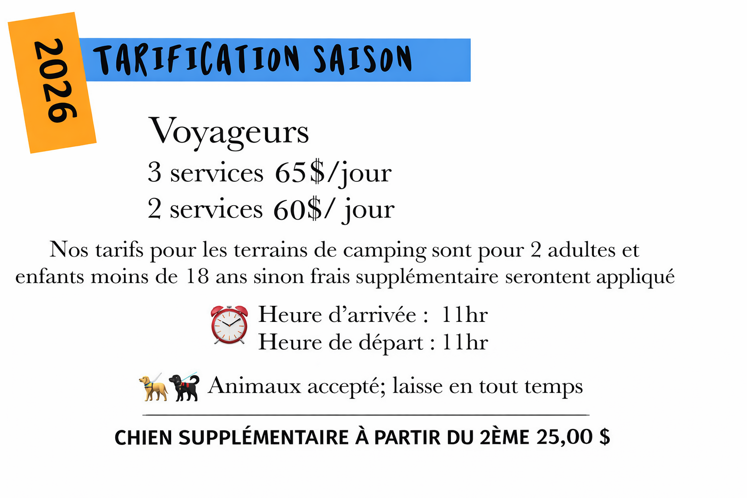 Tarifs pour la saison 2026