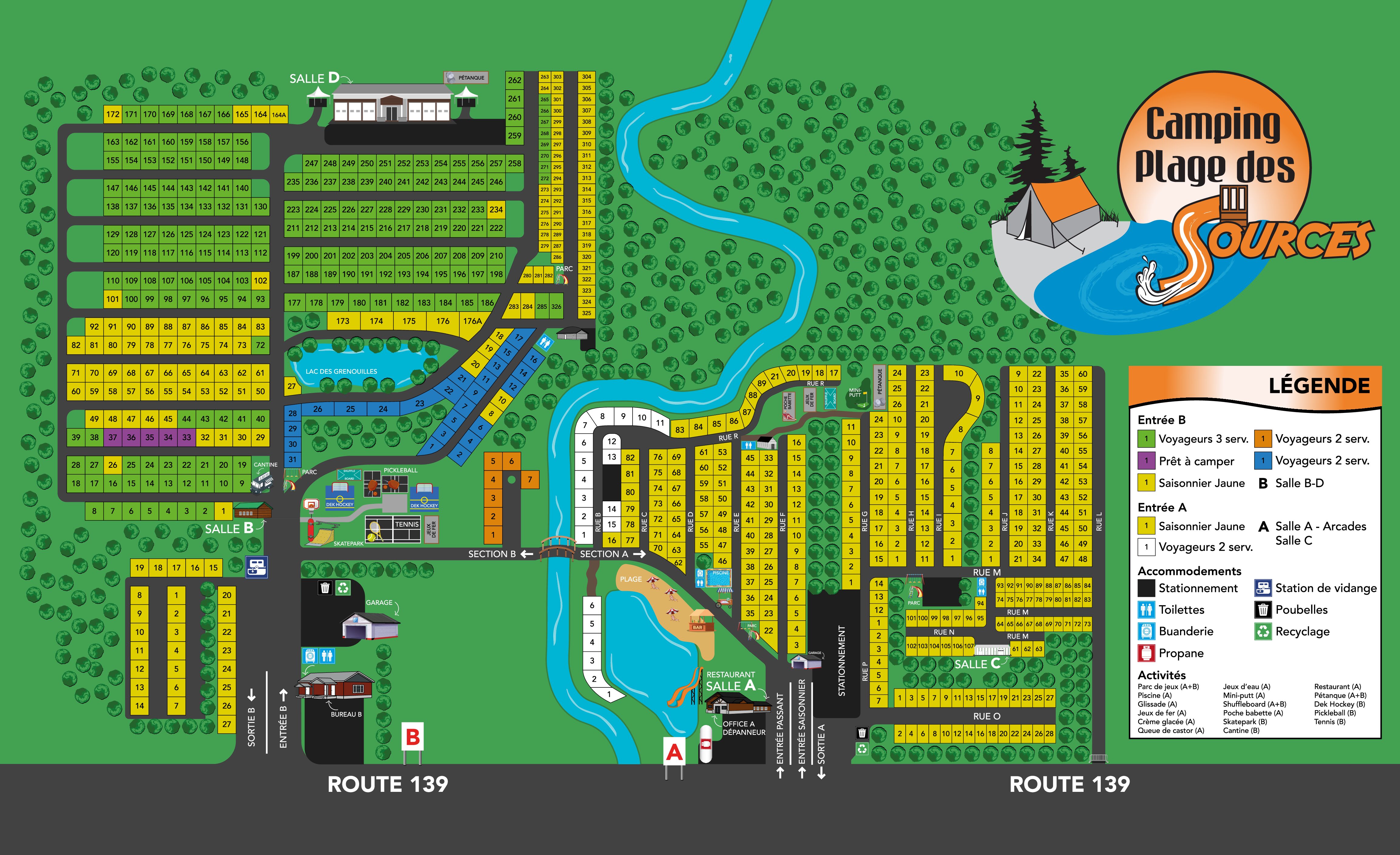Ouvert de mai à septembre, le Camping Plage Des Sources vous accueille à la saison, à la semaine ou à la journée pour vous proposer d’excellents services et d’agréables activités qui sauront plaire aux petits et grands. Découvrez-les dès maintenant :